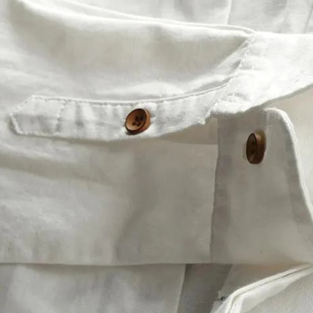 Die leichte, atmungsaktive Leinen-Baumwoll-Mischung sorgt für hohen Tragekomfort – auch an wärmeren Tagen. Gleichzeitig überzeugt das Material durch seine Langlebigkeit und Pflegeleichtigkeit.